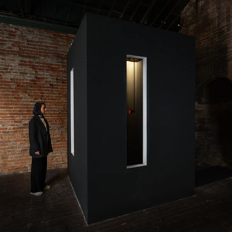 Bünyamin Atan’ın mimarlık disiplinini dışında ürettiği ilk sergilenen eseri olan Kara Kutu, aslında stilize edilmiş ve çeşitli sembollerle yeniden biçimlenmiş bir ikna odası simülasyonudur. Ancak bu kez deneyimlemek için odayı dışarıdan gözlemlemek, sanatçının oluşturduğu iki dar pencereden, izleyiciye izin verdiği ölçüde farklı bakış açılarıyla tanıklık etmek şartı koşulmuştur.